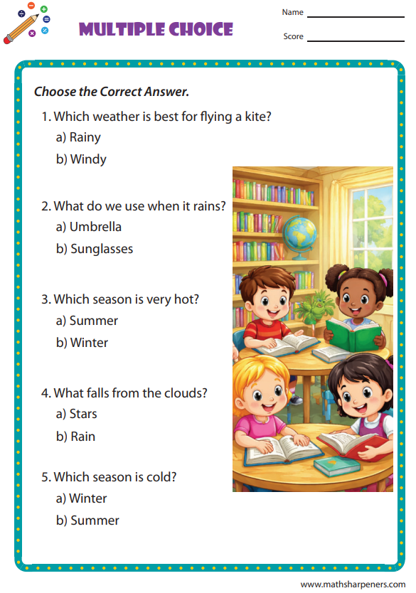 These worksheets improve observation skills, vocabulary, and basic science understanding. Children also learn to connect weather with daily life, such as choosing the right clothes or activities for each season.